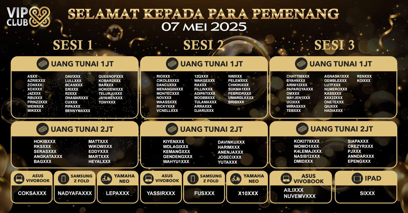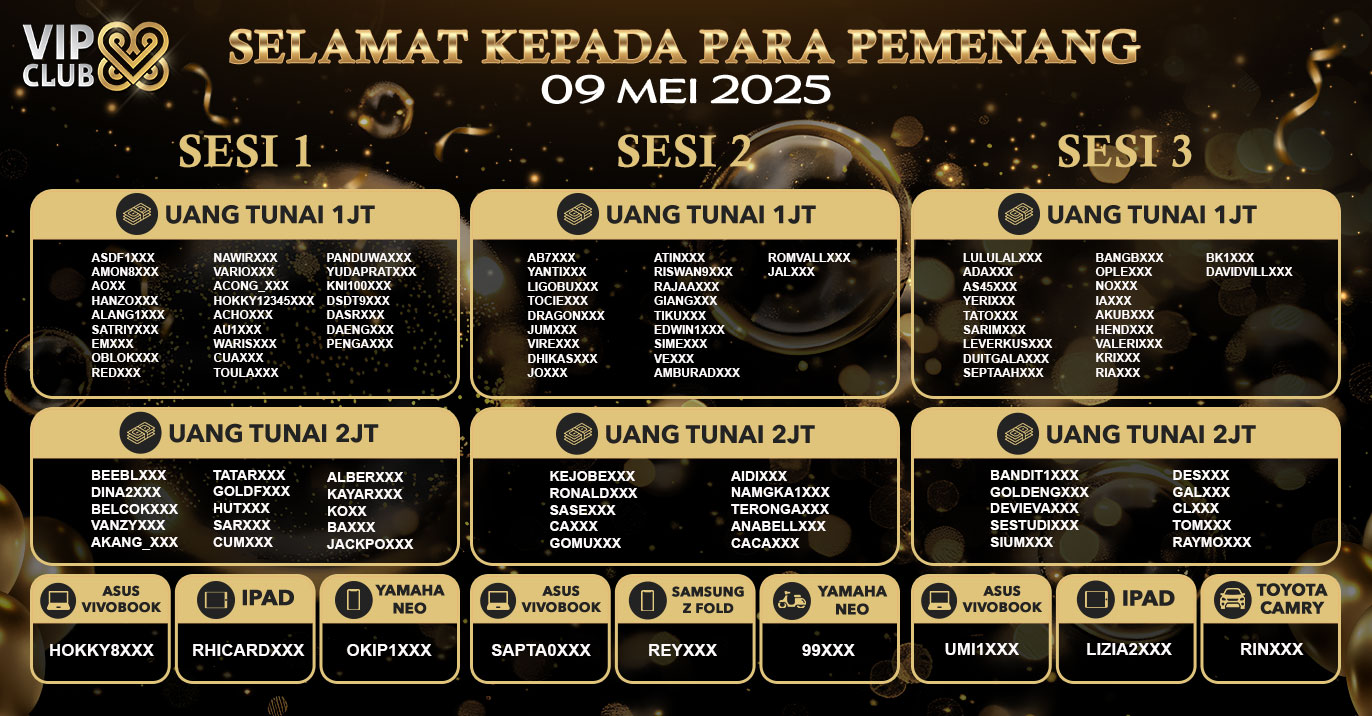 PEMENANG EVENT ANNIVERSARY VIPCLUB88 KE 9