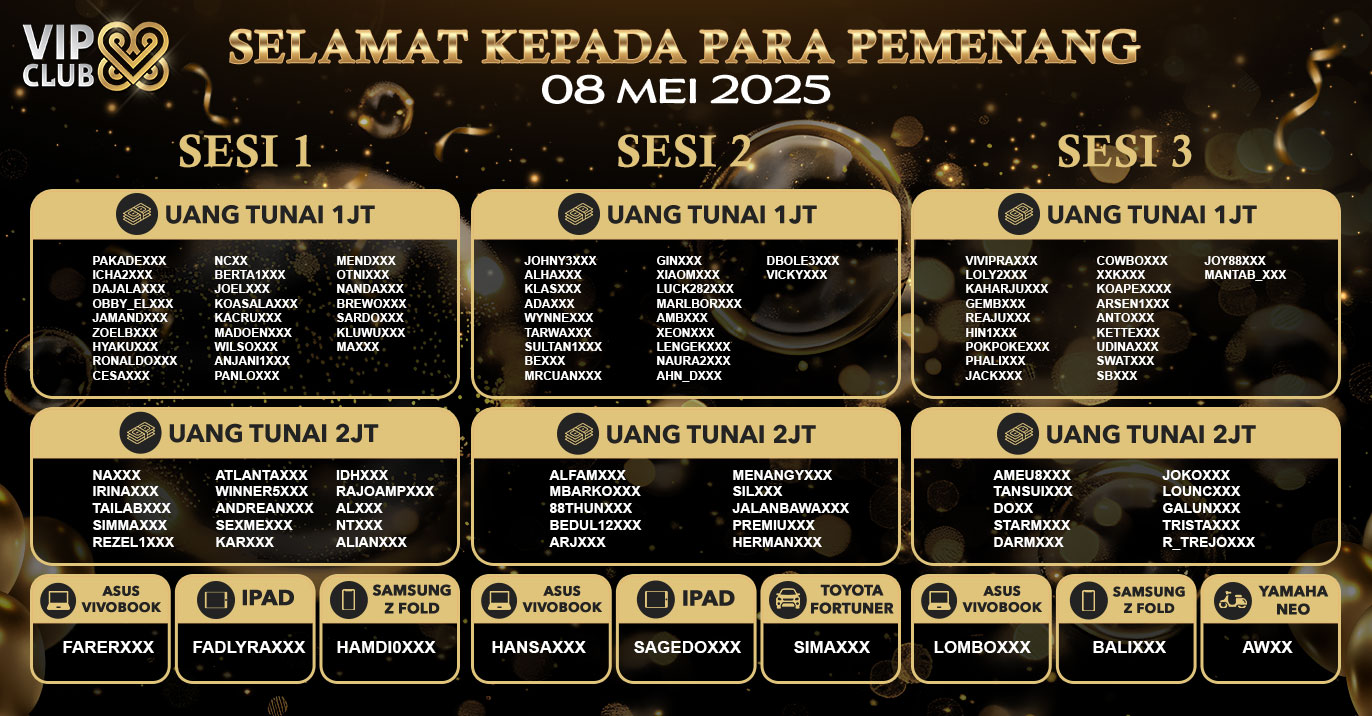 PEMENANG EVENT ANNIVERSARY VIPCLUB88 KE 8