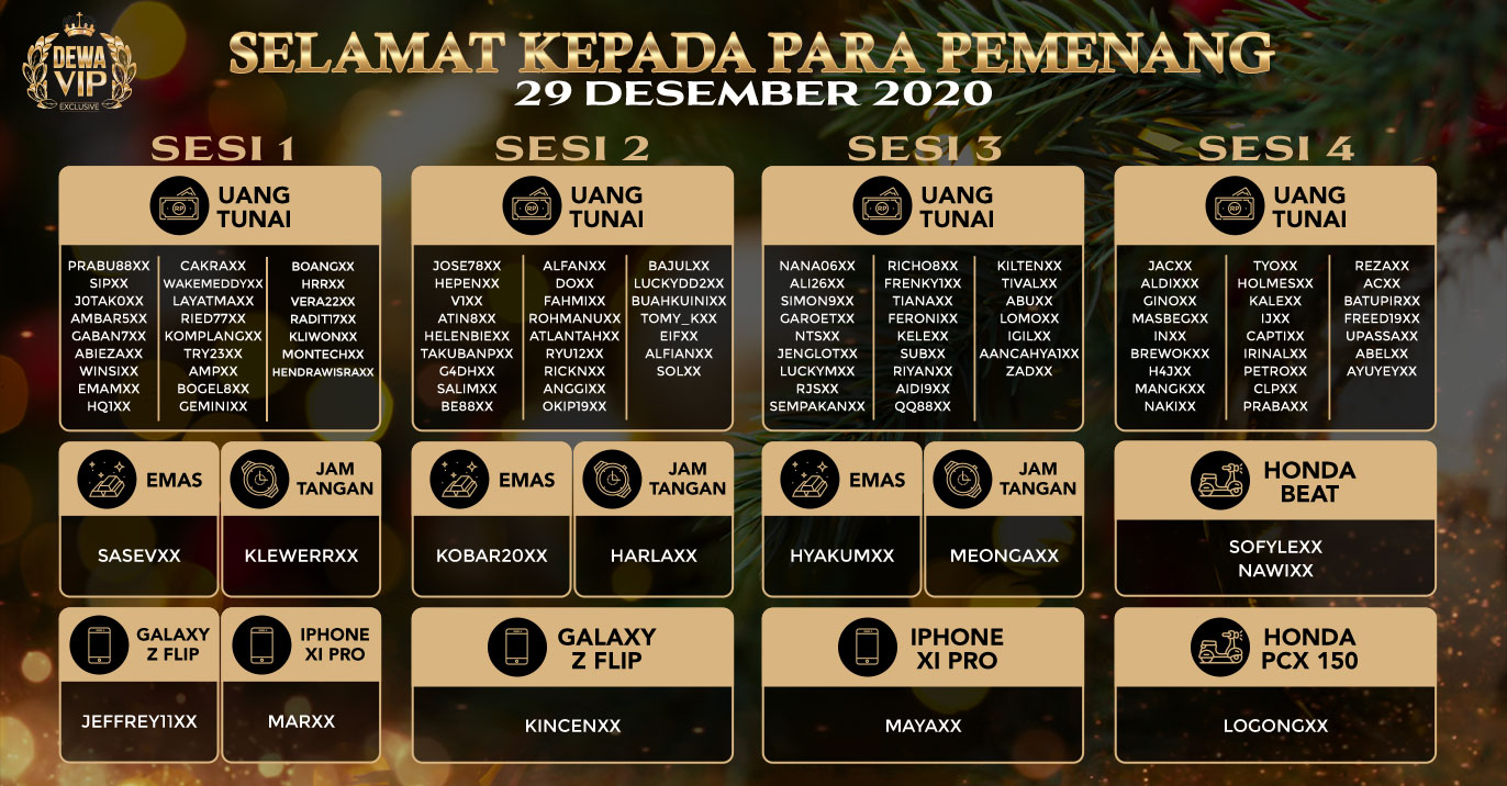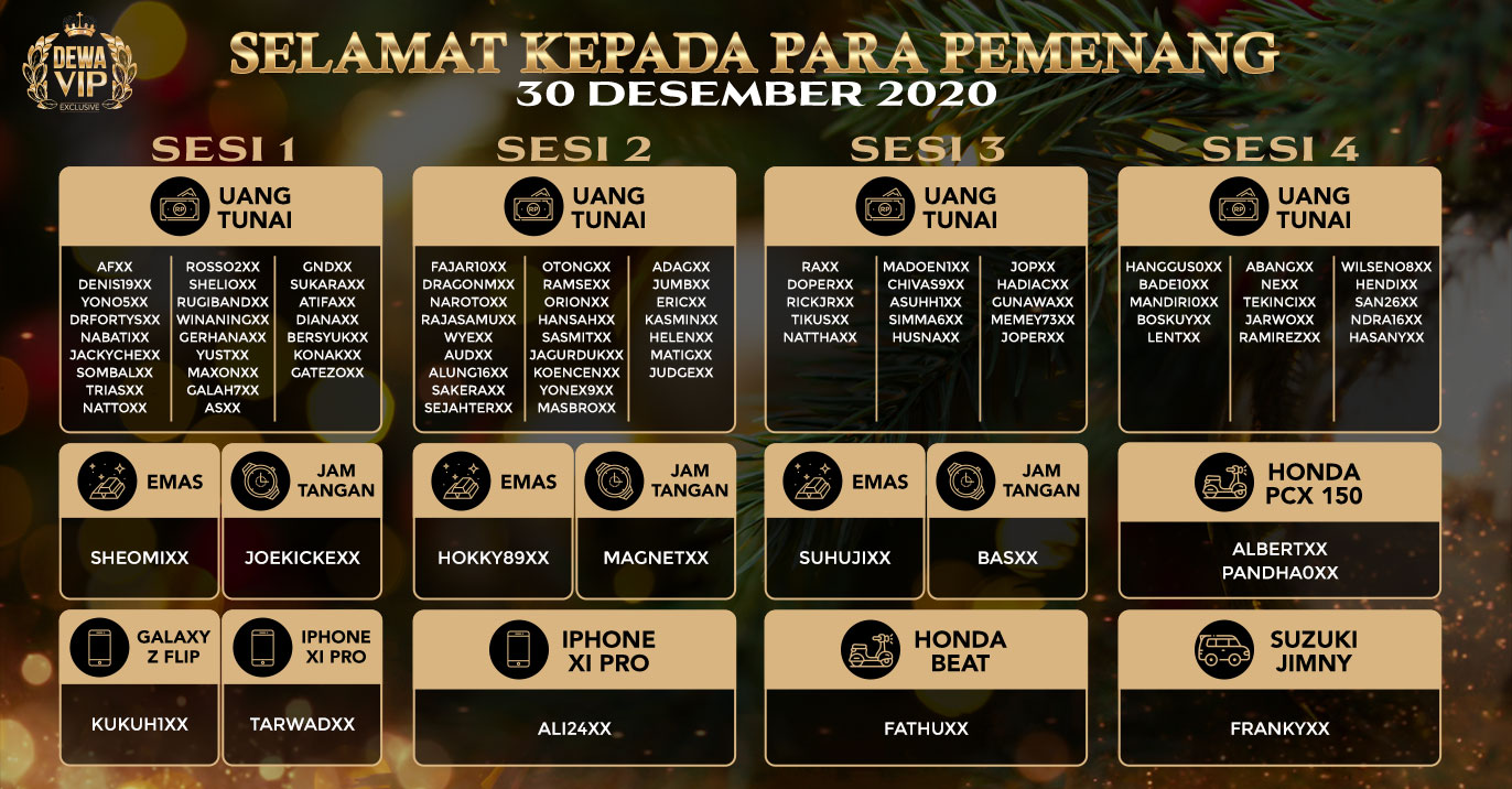 PEMENANG EVENT ANNIVERSARY VIPCLUB88 KE 9