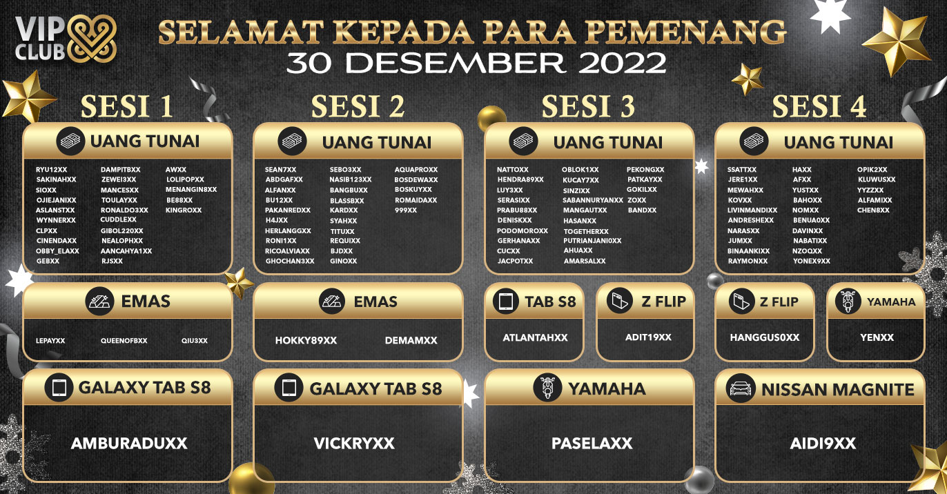 PEMENANG EVENT ANNIVERSARY VIPCLUB88 KE 9