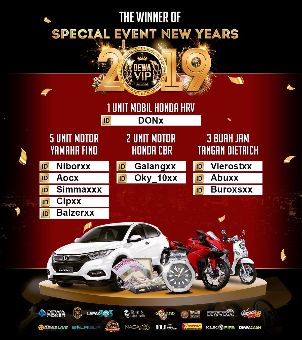 PEMENANG EVENT ANNIVERSARY VIPCLUB88 KE 9