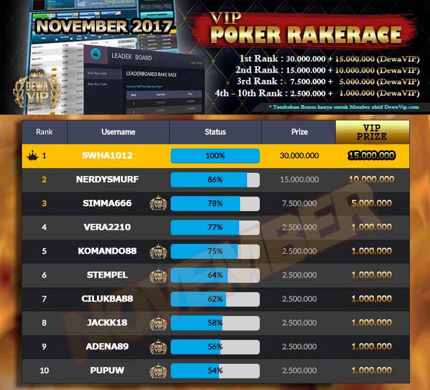 PEMENANG POKER RAKERACE DECEMBER 2017