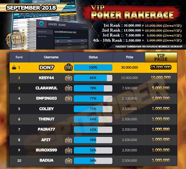 PEMENANG POKER TOURNAMENT SEPTEMBER 2017